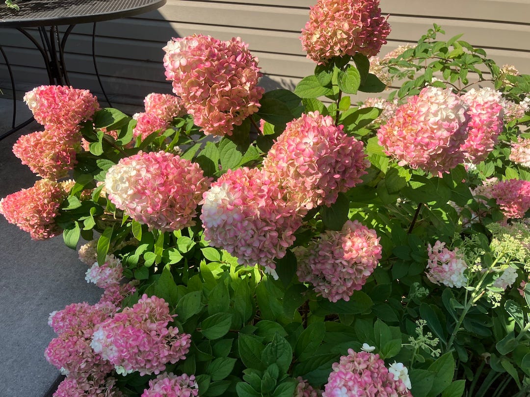 My husband planted the hydrangea pictured above two summers ago, and it’s come into its own. The bush is right outside our front door so I see it often. Its beauty leaves me breathless.